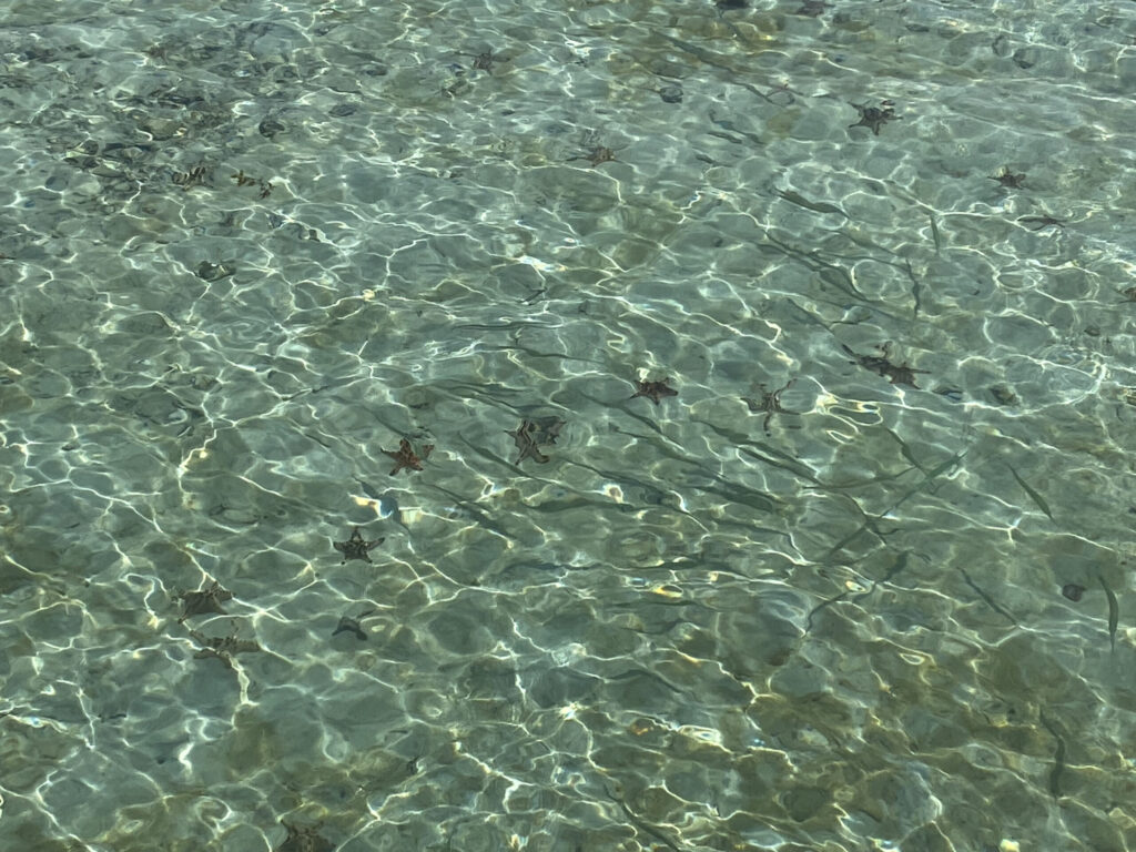 在星巴克门口,就可以看到清澈的海水,成群的小鱼,以及近岸浅绿色的珊瑚礁区域。