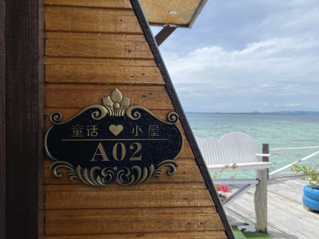 十分钟快艇之后,就入住了酒店。整个酒店就坐落在一片珊瑚礁浅水区,整个海水都是浅绿的颜色。为了下海游泳方便,专门升级了loft水屋。在阳台就可以直接到海里去玩。
